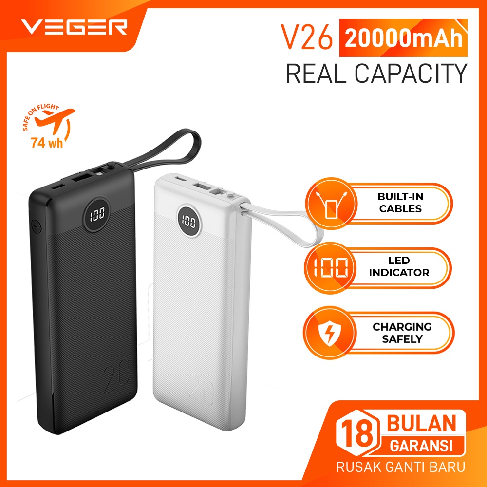 Beli VEGER Powerbank V26 20000mAh 4 Output 2.4A LED Indicator Digital Display Power Bank di sini