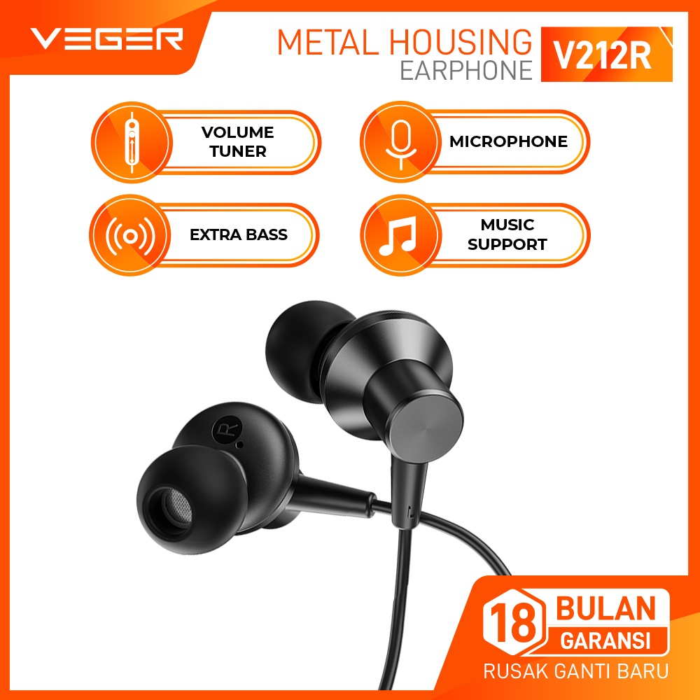 Beli VEGER Wired Earphone Headset In Ear V212R Metal Housing Extra Bass Handsfree di sini